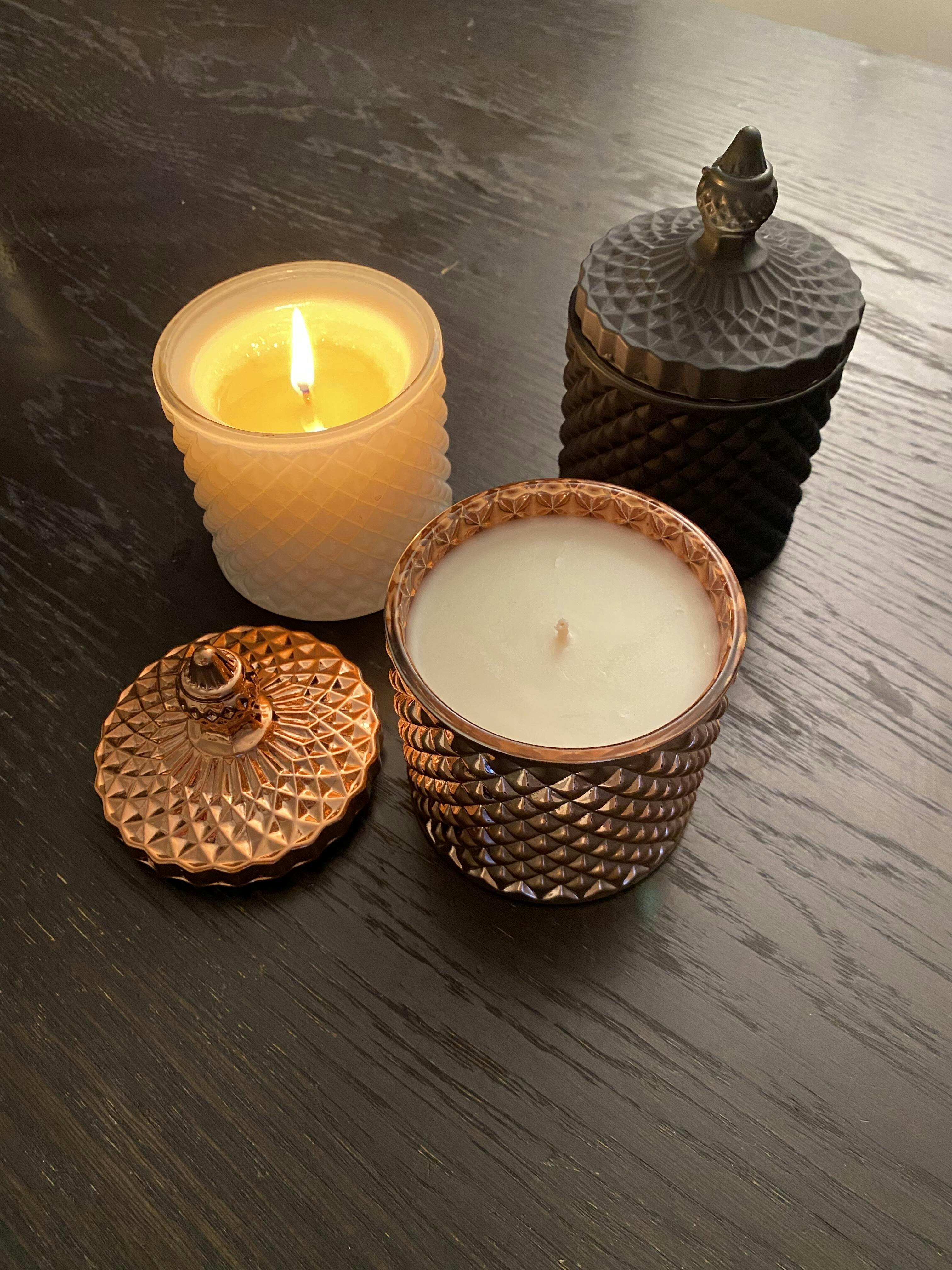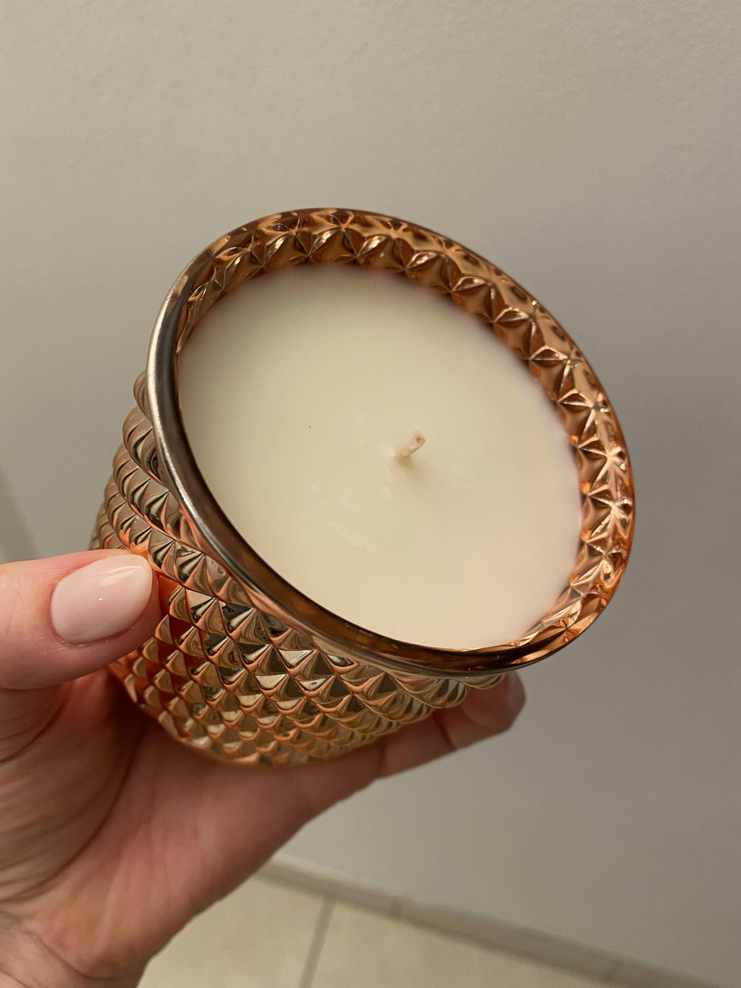 The Rose Gold Crown Geo's are a rich, glamorous jar that brightens the room with its presence and in the dark, both with the scent of the candle and its shine. A durable piece that is easy to move and can fit in to any style of decoration. Can also be used to store valuables.